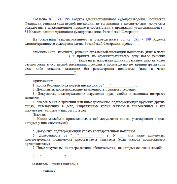 Апелляционная жалоба на решение суда по административному делу